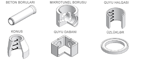 Almaniyanın "HESS GROUP" və "SCHLOSSER PFEİFFER" firması avadanlıqlarının tətbiqi vasitəsi ilə yüksək standartlara uyğun markalı xammal - materiallardan hazırlanmış quyu dabanı, halqalar, konuslar beton borular və istənilən park, səki, piyada yolları və sair abadlıq işləri sahəsində tətbiq edilə bilən məhsullar.