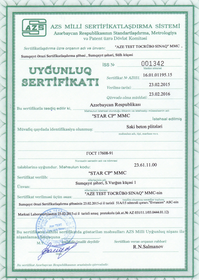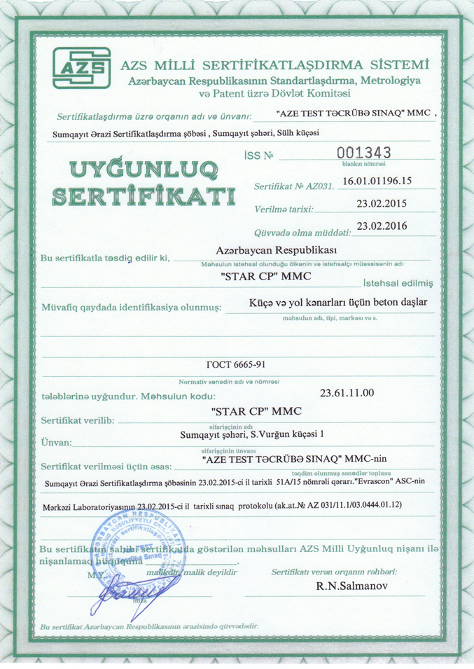"STAR CP" MMC - UYĞUNLUQ SERTİFİKATI